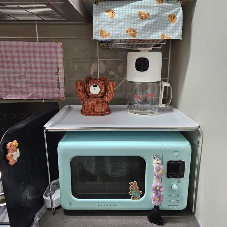 와! 엄청 깔끔한 전자레인지 선반을 발견했어요 왜 사니까 할인하는지 모르겠지만(화난닷?) 일단 맘에 ...