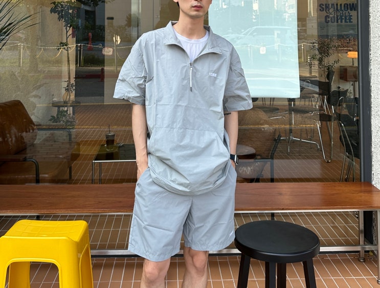 남자 냉감 바람막이 여름 코디 추천 아노락 셋업 + 여름 샌들