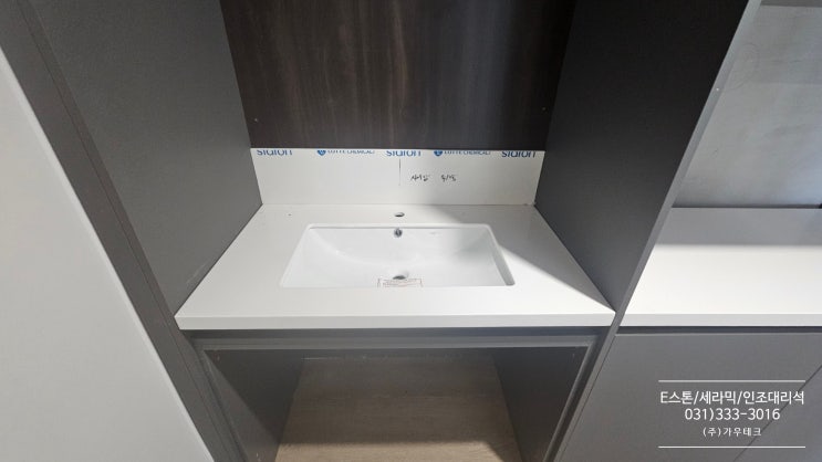신경주 더 퍼스트 데시앙 부속동 인조대리석 카운터 및 화장실 상판 화장실 선반(젠다이)시공