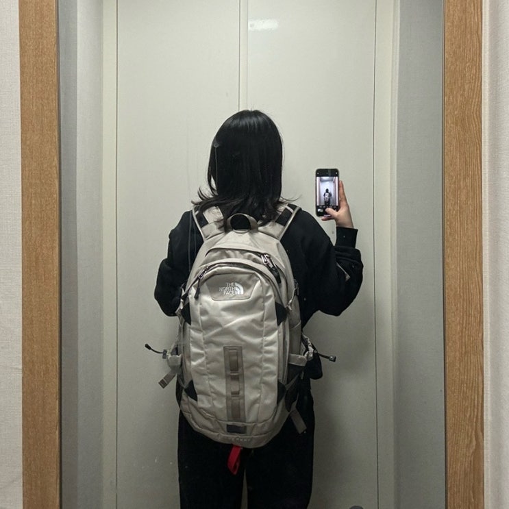 노스페이스 백팩 핫샷 NM2DQ02C_SDS 샌드 쉘 (베이지+아이보리) 착용샷 후기