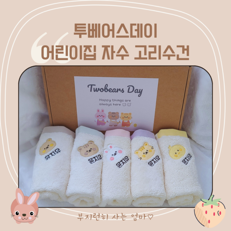 어린이집고리수건 이름자수 거즈고리수건 리베온