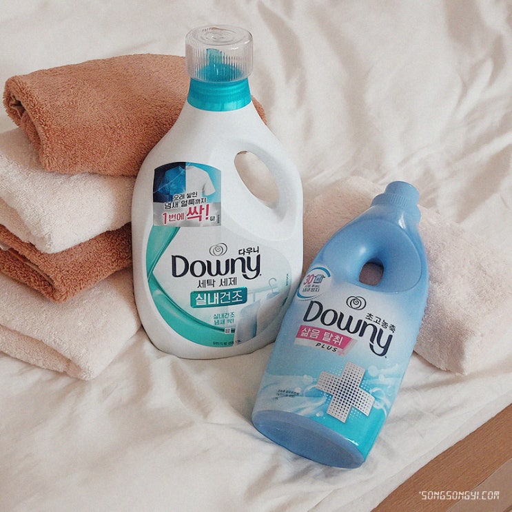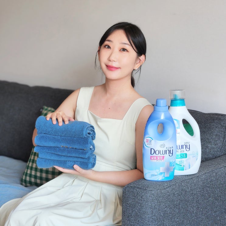 수건냄새에는 다우니 섬유유연제 & 세탁세제 조합