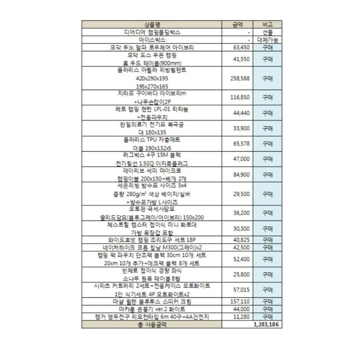 첫 캠핑을 위한 캠핑용품 구매목록