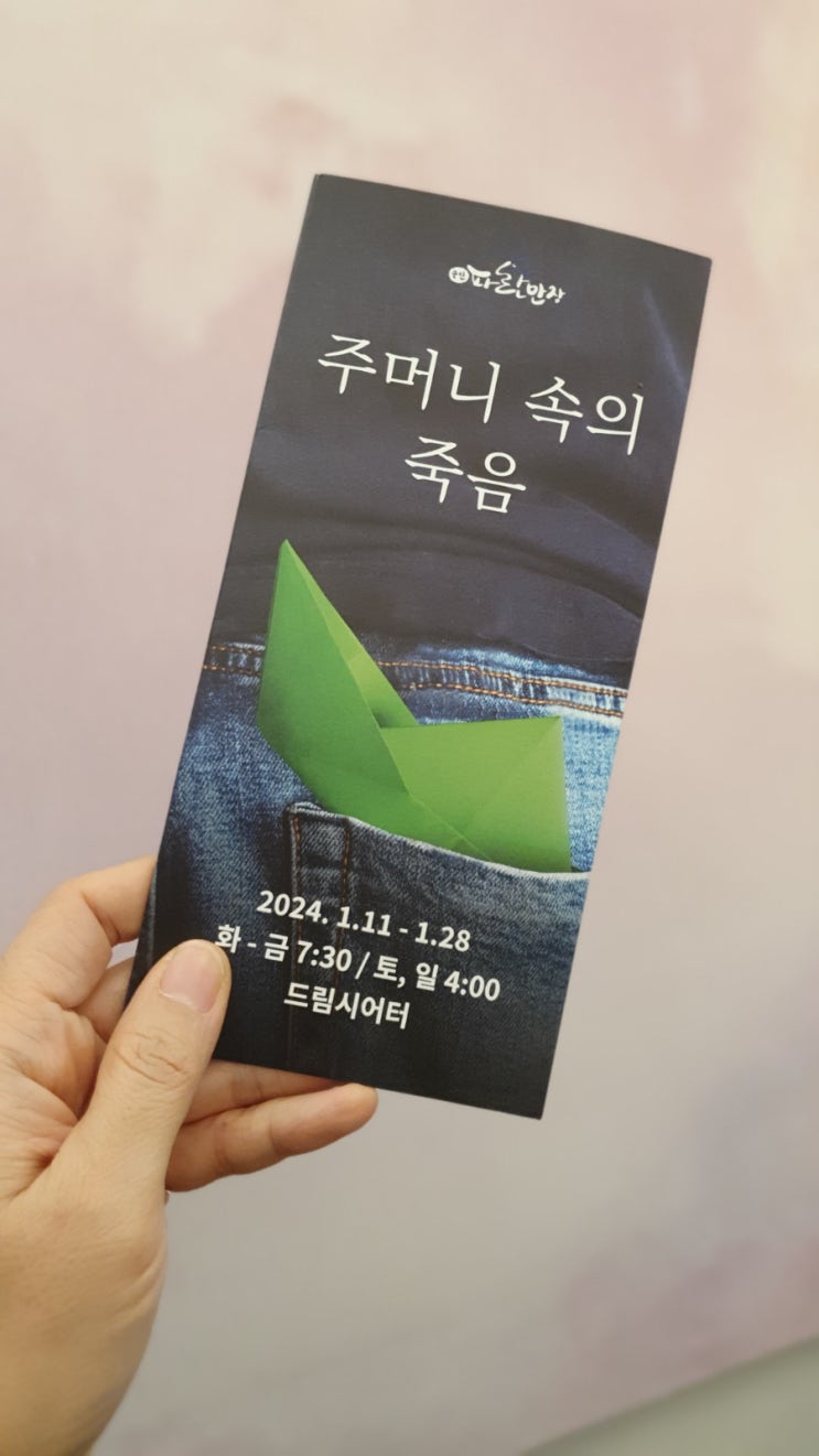 <주머니 속의 죽음> 연극을 보는 날이다. 2막 1장 연극팀과 대학로에서 만나기로 했다. 죽음이라는 ...