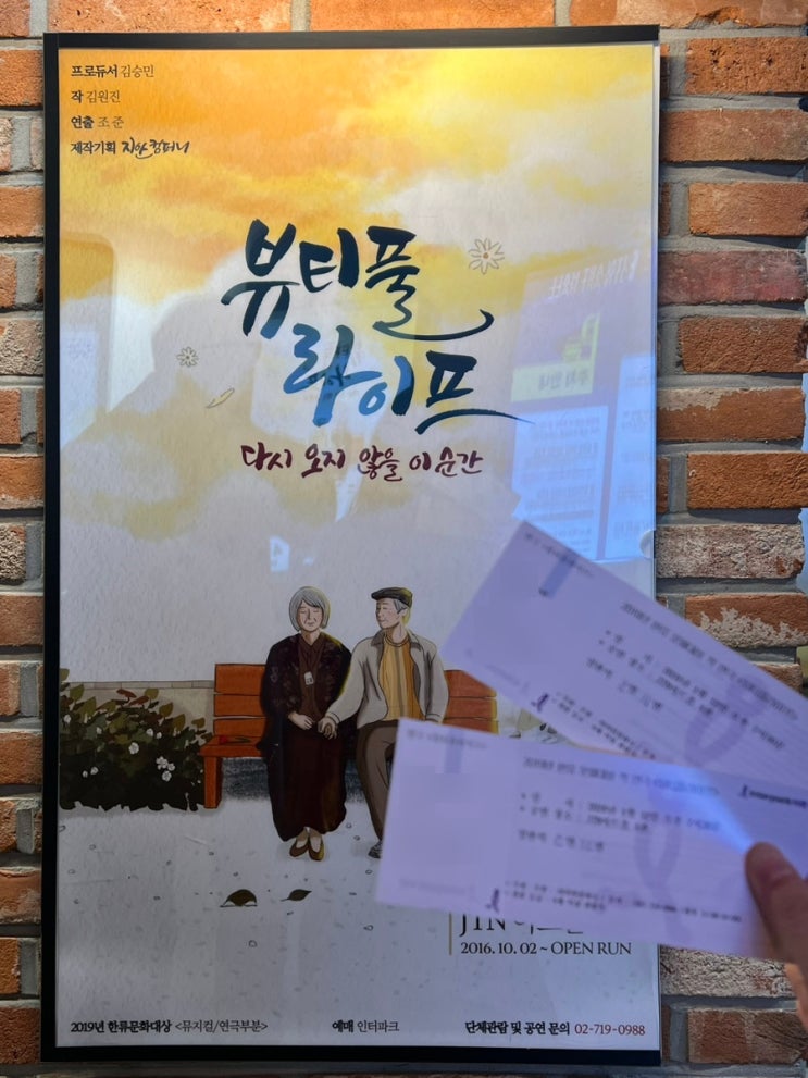 대학로 연극 뷰티풀 라이프 오랜만에 연극을 보러 왔다 작년 5월에 여기서 연극 리미트를 봤었는데 너무나 ...