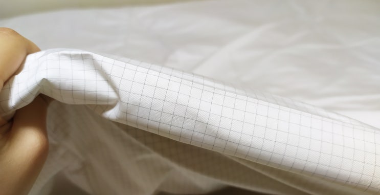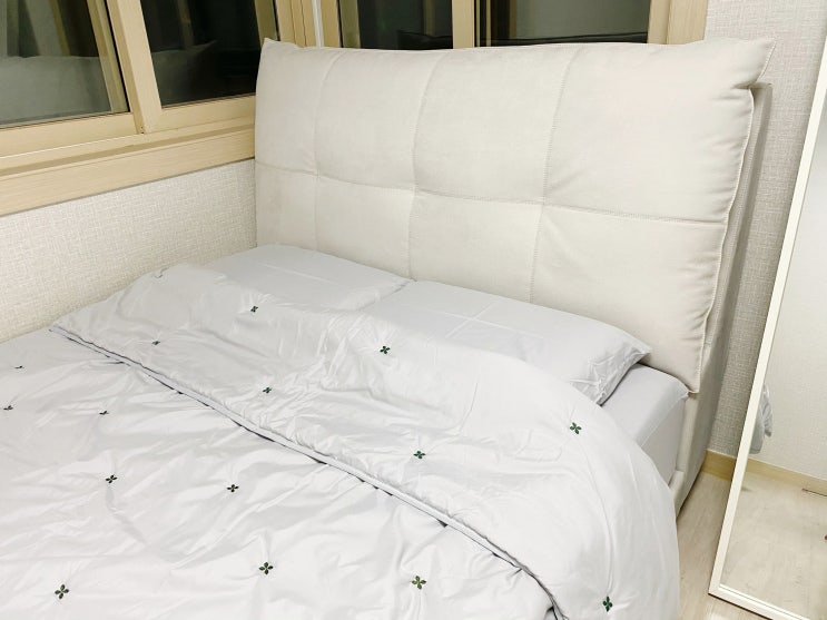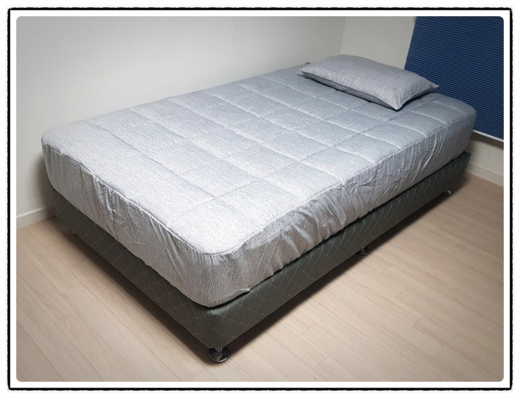 주문제작으로 만든 몽제매트리스 커버링이예요.. K사이즈의 매트리스인데 접어서 보관하기 용이하게 3단접...