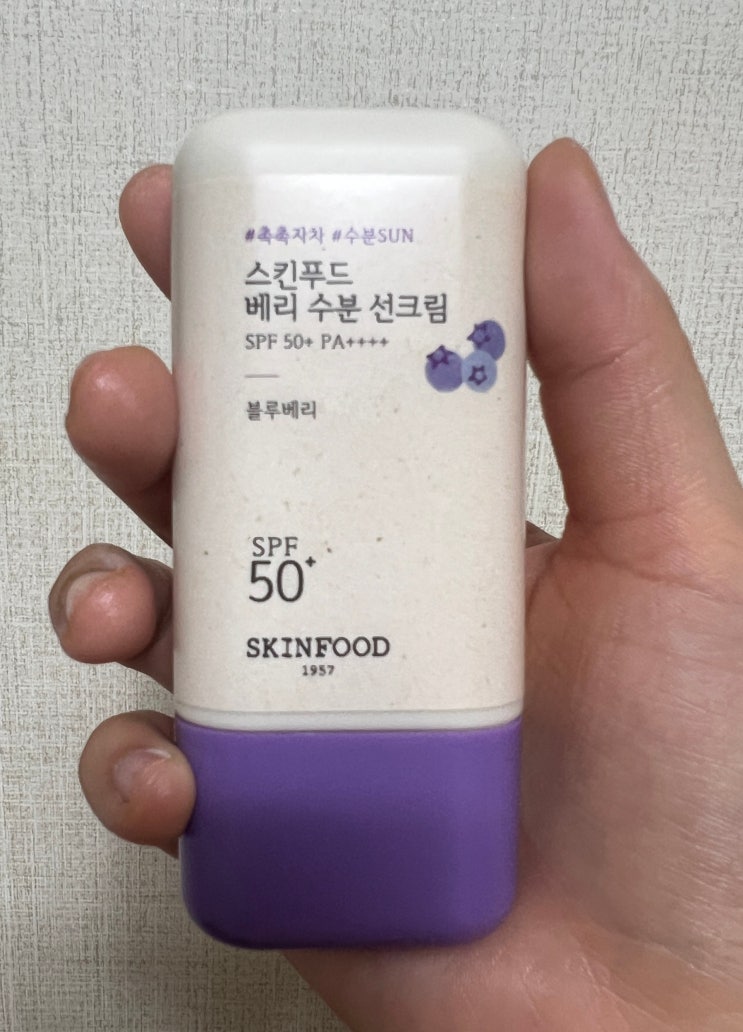 제품명 스킨푸드 베리 수분 선크림 유기자차 선크림 구매일 2024년 6월의 어느 날 구매가격 1+1으로 22000...