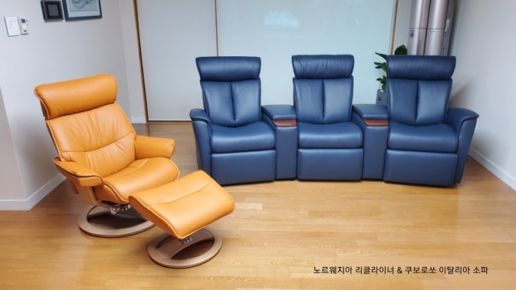 노르웨지아 스페이스 릴리 1인용 리클라이너 + 쿠보로쏘 이탈리아 '리베찌오' 소파 고객 설치사진입니다