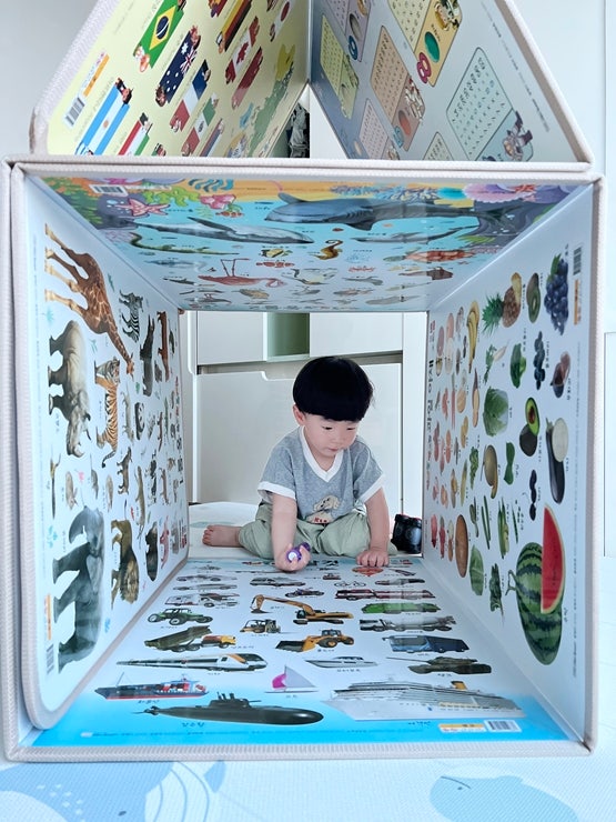 돌아기 병풍 책으로 웅진책방 펼치고 세우는 놀이하우스를 사용해보게 되었어요. 까꿍놀이를 하며 16개월 ...