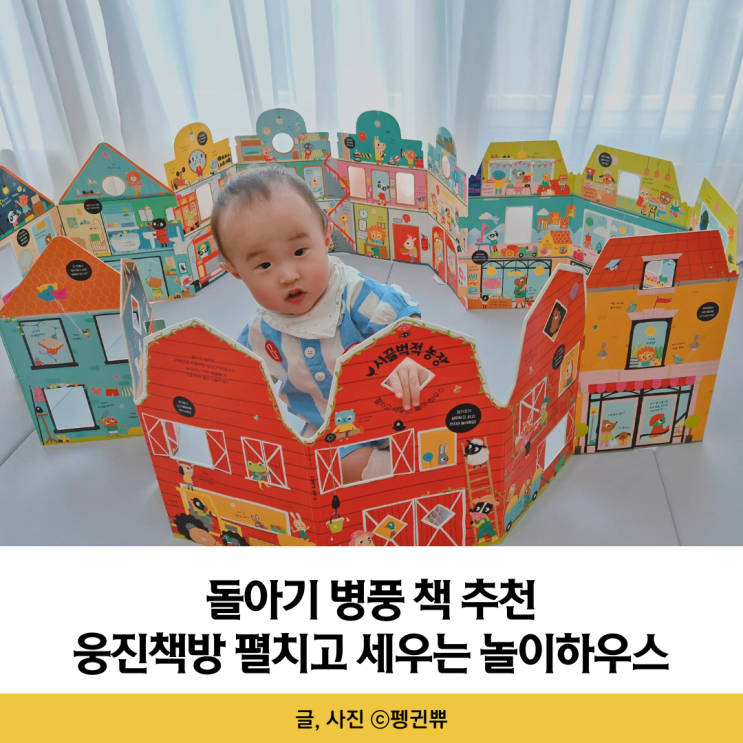 돌아기 병풍 책으로 웅진책방 펼치고 세우는 놀이하우스를 사용해보게 되었어요. 까꿍놀이를 하며 16개월 ...