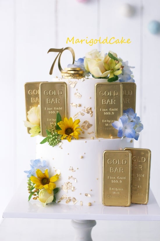 꽃은 조금만 장식하고 골드바를 같이 장식해 주세요~ 하고 주문해 주셨어요. 칠순생화케이크를 주로 만들면...