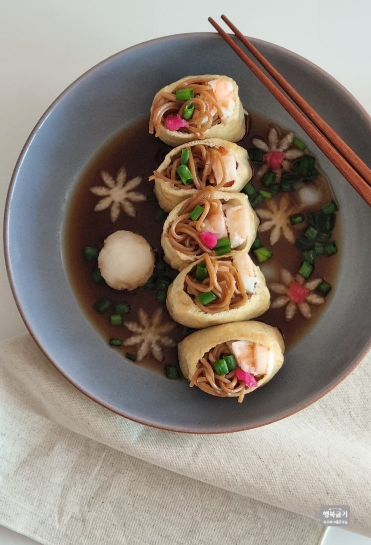 쯔유에 띄운 냉 메밀 유부주머니 만들기 냉 모밀 소바 메밀면 요리