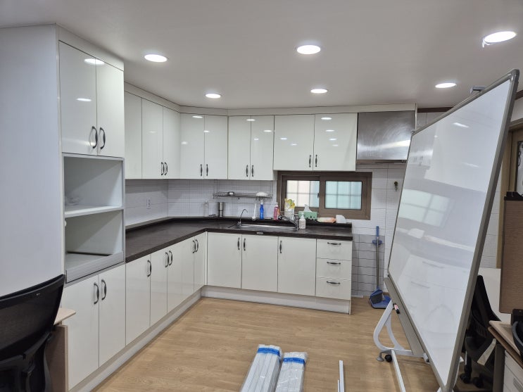 암막커튼+병원레일로 공간만들기 음식점 입니다 깔끔한 주방을 위해 공간분리와 함께 새로운 공간을 만들었...