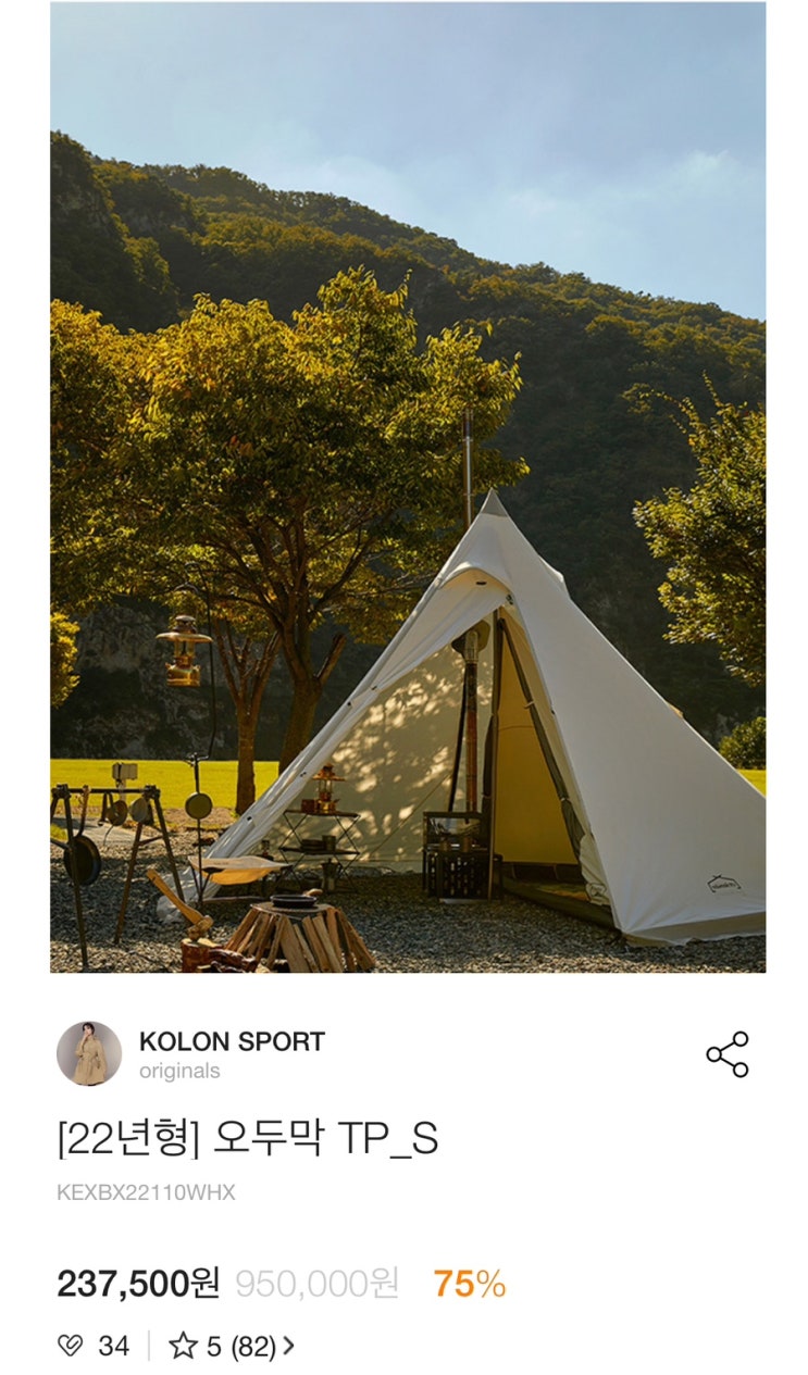 코오롱 오두막 텐트 대란 75% 타프 가격 및 사이즈, 스펙 참고