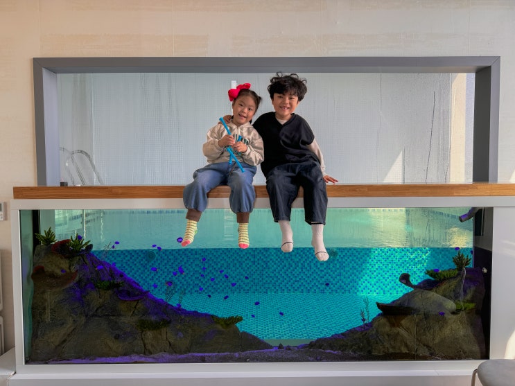 울산 키즈풀빌라 ⓒ달콤한소금 키즈호텔 수족관 크레센트문 주말에는 아이들 학교학원다닌다고 피곤할거 같...
