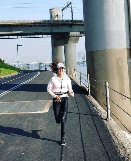 노스페이스 서밋런 트레일 러닝 베스트 트레일러닝조끼 입고 하버브릿지 뛰어