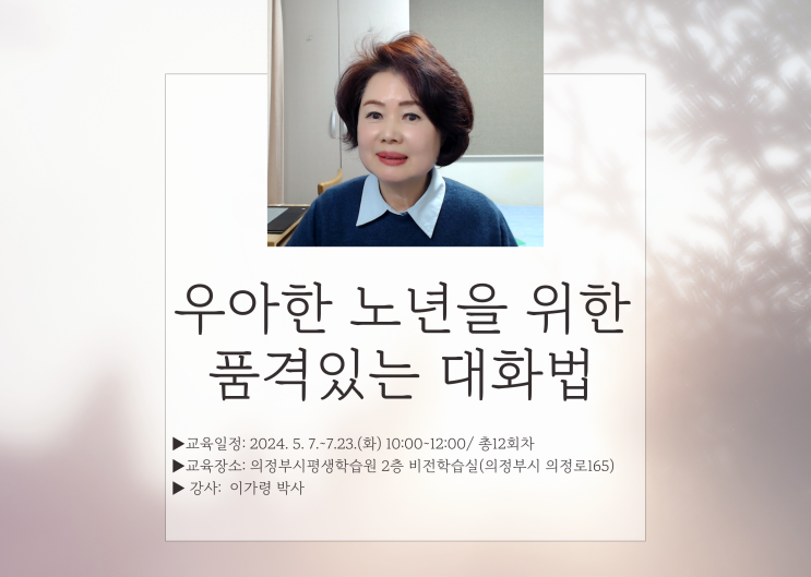 우아한 노년을 위한 품격있는 대화법 강의, 의정부평생학습관에서 12회차시 실시