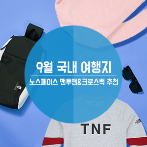 9월 국내 여행지 추천! 노스페이스 남자&여자 맨투맨, 크로스백 추천