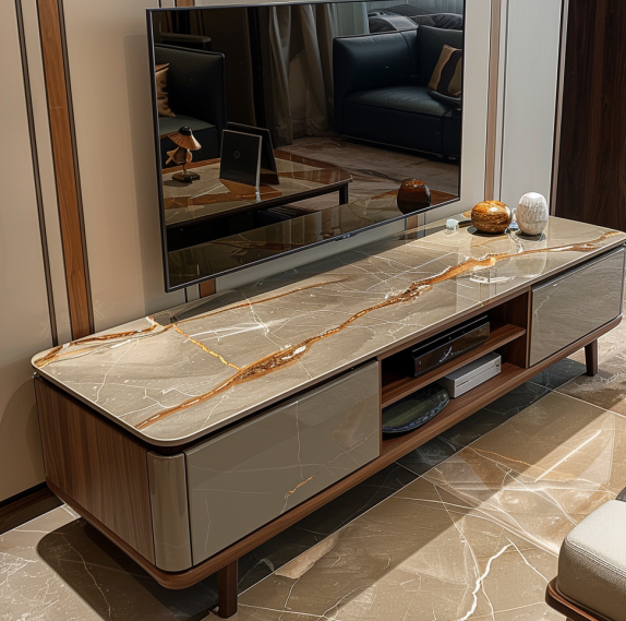 거실 TV장식장 원목과 세라믹 상판 조합