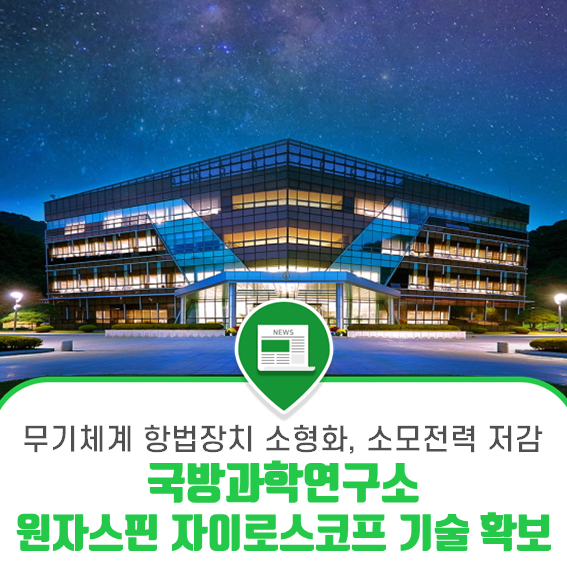 국방과학연구소, 원자스핀 자이로스코프 기술 확보 - 무기체계 항법장치의 소형화 및 소모전력 저감 위한 첫걸음 -