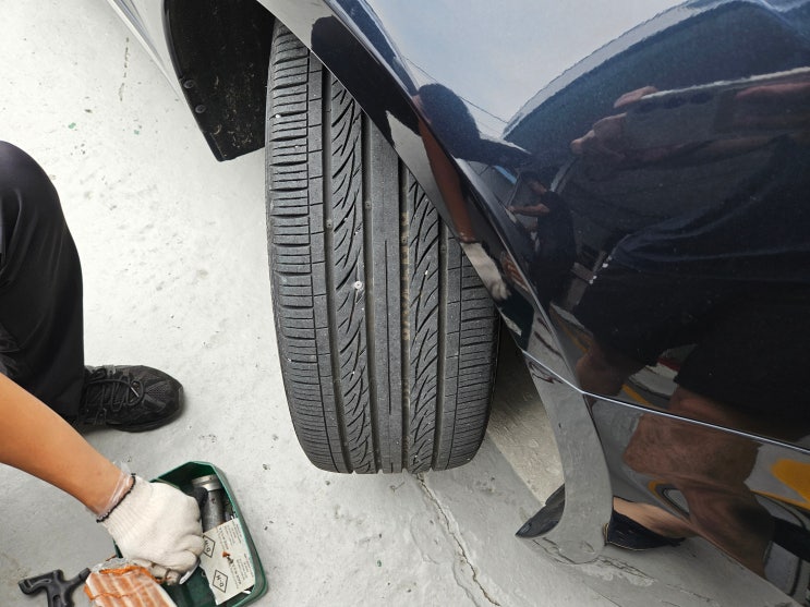 타이어 공기압이 낮습니다. 나사 박혀서 지렁이 넣기