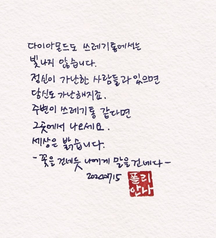 다이아몬드도 쓰레기통에서는 빛나지 않습니다! 7월 15일 다이아몬드도 쓰레기통에서는 빛나지 않습니다. ...