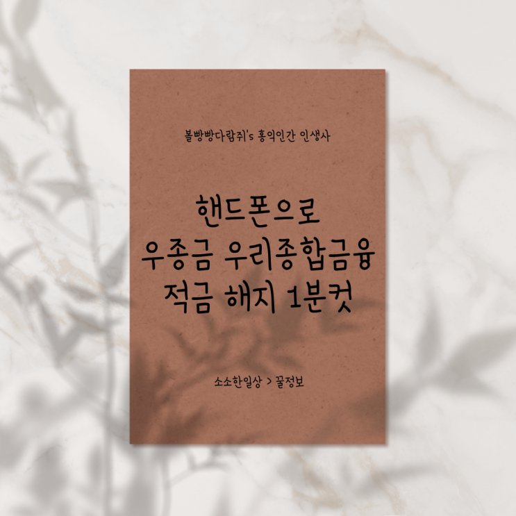 안녕하세요 볼빵빵다람쥐입니닷! 오늘은 우리종합금융 적금 해지 1분컷 입니다. 지난번 예금적금 이자 계산...