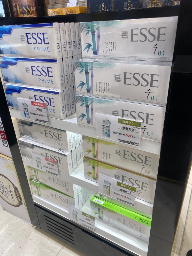 수하물 찾는 벨트 쪽에 있는 "입국장 면세점" 기준의 가격임 (2024년 5월 촬영) 에쎄 프라임, 수...