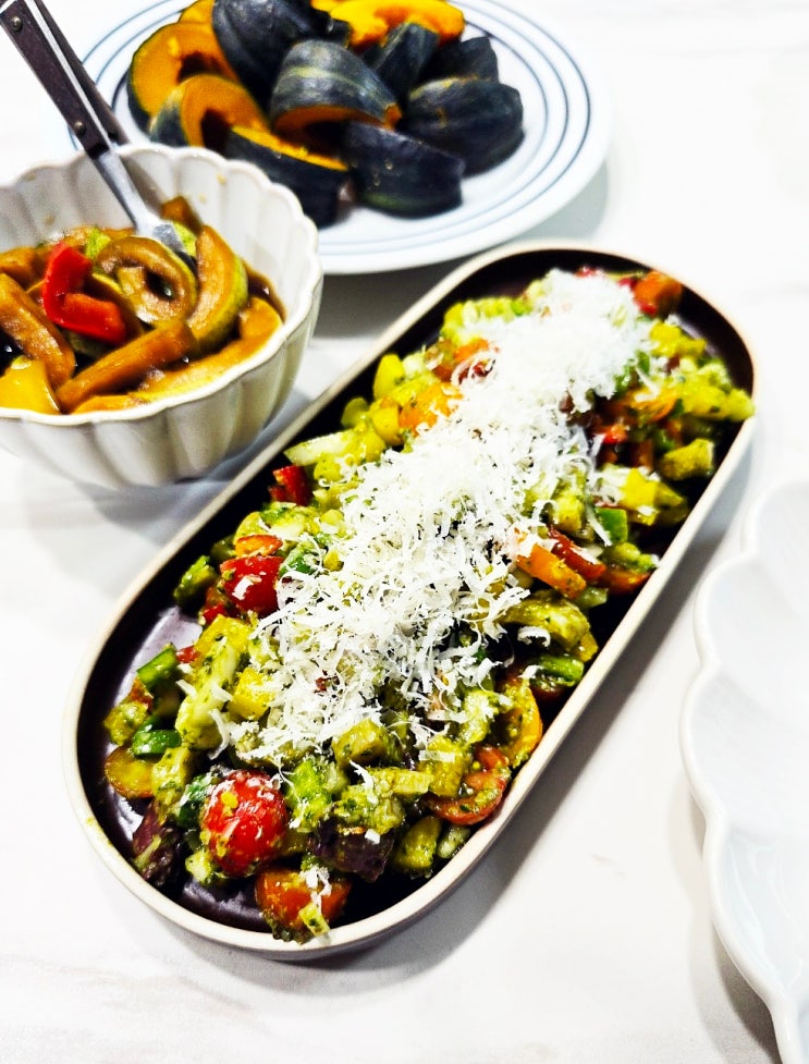 문어샐러드 방울토마토 파프리카 샐러드 만들기 바질페스토 소스
