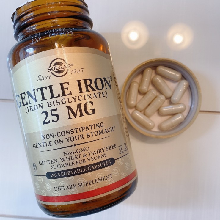 [2020.12.13.아이허브iHerb 구매]솔가 철분제|Solgar,Gentle Iron,25mg,식물성 캡슐 90정,120정,변비 유발하지 않는 순한 제품|피로회복