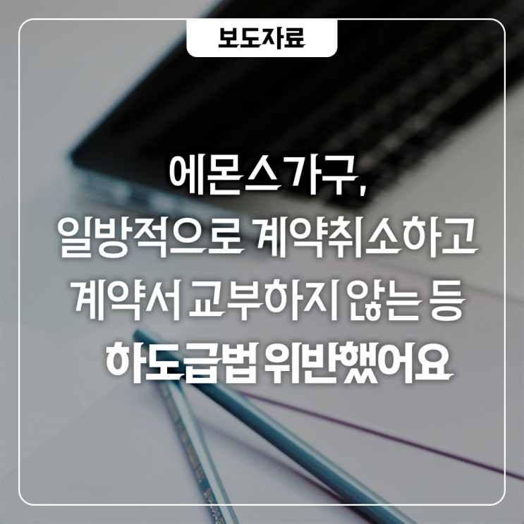 수급사업자와의 계약을 일방적으로 취소하는 등 에몬스가구, 하도급법 위반했어요!☝️ 지난 11일(목), 공...