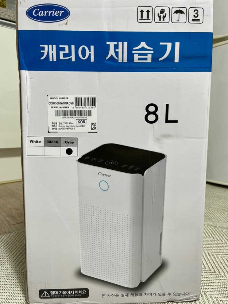 캐리어 8L 제습기 CDHC-080AONWOYH 그레이 내돈내산 후기