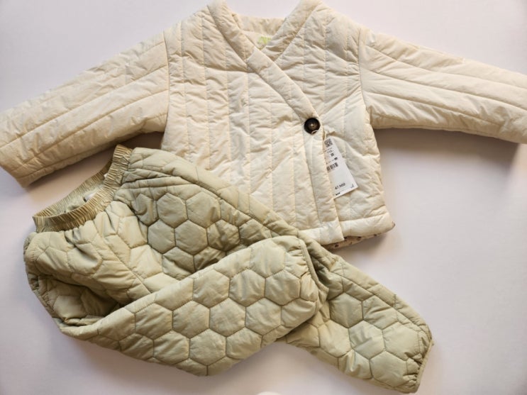 어제 갑자기 자라키즈가 눈에 띄는바람에 충동구매 온라인 쇼핑을 했습니다 귀여운 실버 패딩점퍼와 와이드...