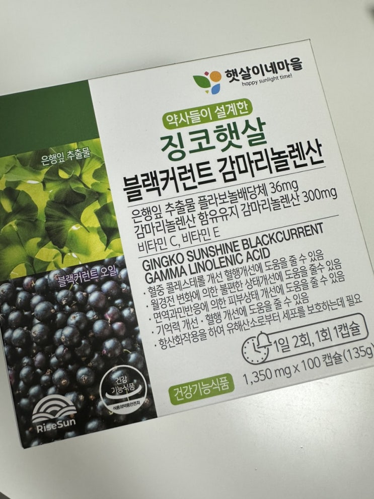 징코햇살 블랙커런트 감마리놀렌산 효과 먼저 보실게요~! 기억력 개선, 혈행개선에 도움을 줄 수 있음 혈중...