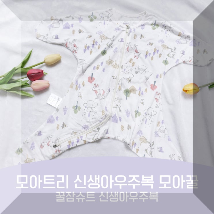 신생아 모로반사언제까지? 모아트리 신생아우주복 모아꿀 꿀잠슈트 일체형 아기옷 국민육아템 리뷰 by디자...