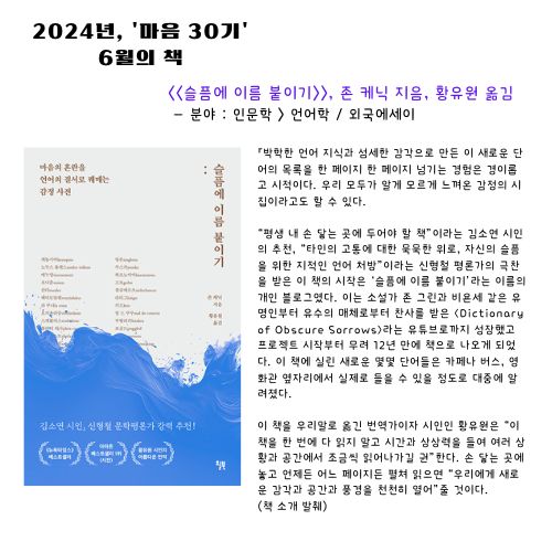 2024년 마음 30기, 6월의 책은 존 케닉의 <<슬픔이 이름 붙이기>>였어요. 처음에 책을 선정했...