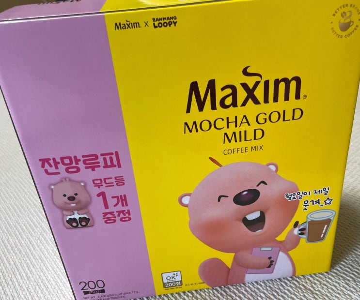 #내돈내산 마트에 이유식 재료도 살겸 장보러 갔다가 맥심커피랑 잔망루피 콜라보를 하고 있는 진열대가 있...