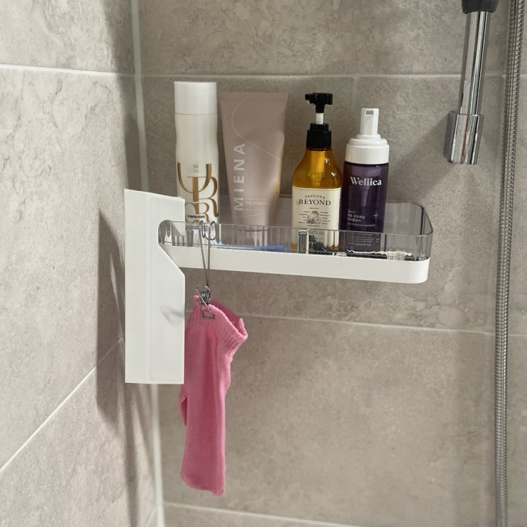 다이소 욕실선반 무타공벽걸이 욕실용품 화장실선반 정리 해봤는데요~ 저는 샤워기 방향에 자주 사용하는 ...