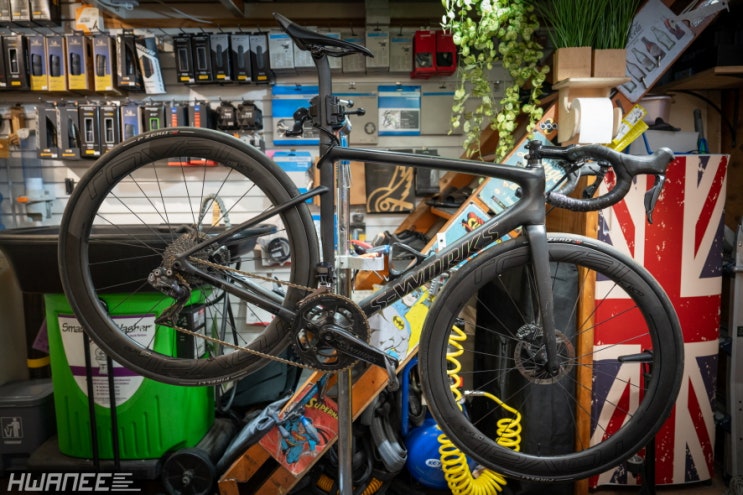 "기존 스램의 기계식 드레일러에서, 신형 무선 트랜스미션 드레일러로 바뀌었습니다." "물...