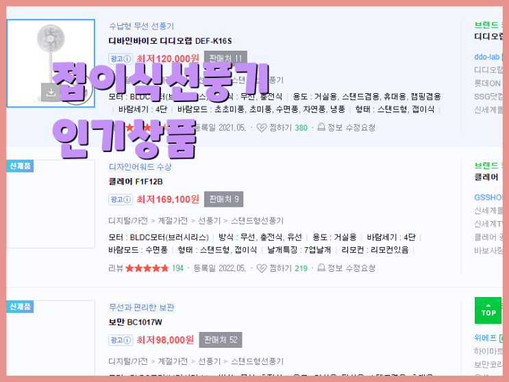 올 여름 접이식 선풍기 뭐가 좋을까?(ft. 파세코, 신일, 한일, 르젠, 시코 접이식 선풍기 비교)