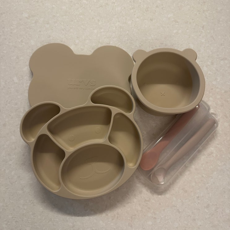 12개월아기 이유식기 추천 urvs 베어 푸드 트레이 실리콘 식판 실리콘 흡착볼 베어볼 선물세트