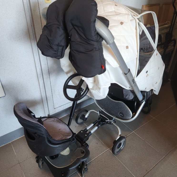 둘째 11개월을 데리고 첫째 차량 등하원을 하려니 계속 첫째가 유모차를 타고 싶어해서 난감했음(원래는 타...