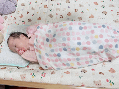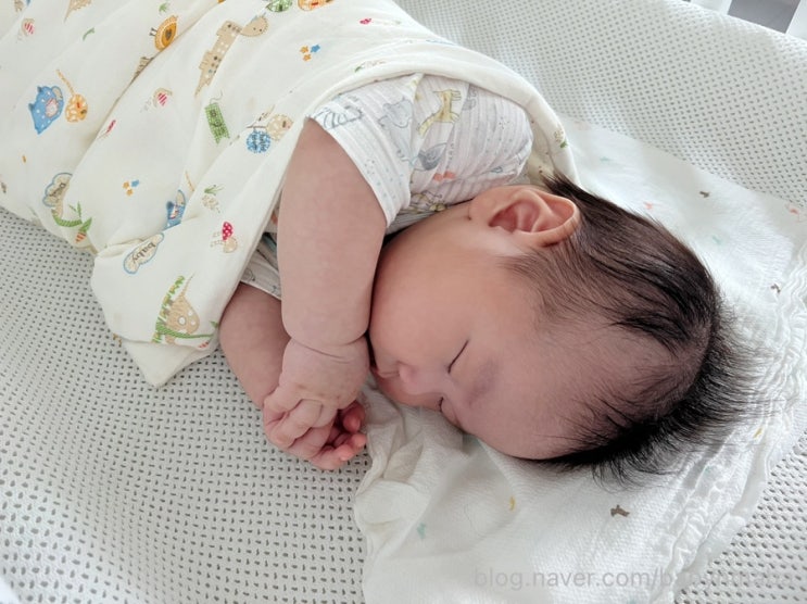 우리 아가,,.. 모로반사가 심해서 잠 재울때는 속싸개가 필수예요!ㅠㅠ 근데 날씨가 더워서 아무리 에어컨...