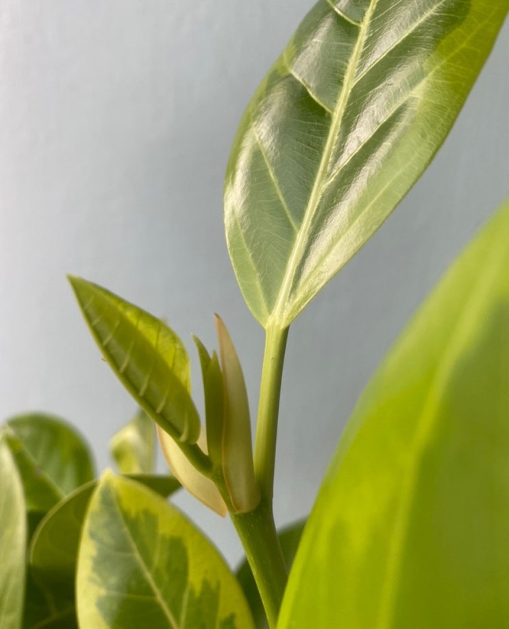 실내공기정화식물로 키우기 좋은 뱅갈고무나무! 요즘 초록 잎이 나오는 모습이 정말 예쁘기도 해요! #뱅갈...