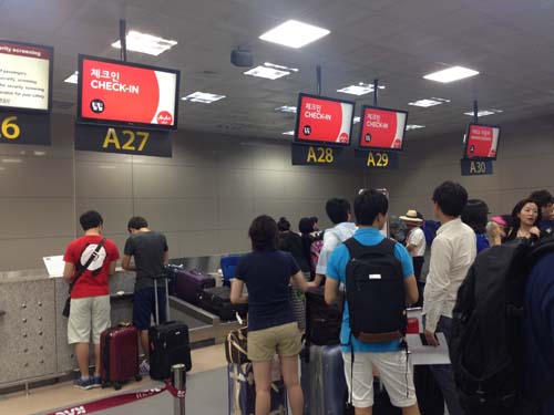 2016년 7월31일 밤비행기 , 김해공항 극성수기여서 괌이나 중국 등등에 가는 사람들이 엄청 많았다! 일찍 ...