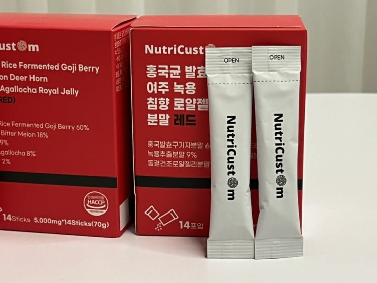 뉴트리커스텀 홍국 분말 가루 녹용 침향 로얄젤리 저분자 구기자 여주 2번 발효 레드 스틱 글/사진 뉴뉴 안...