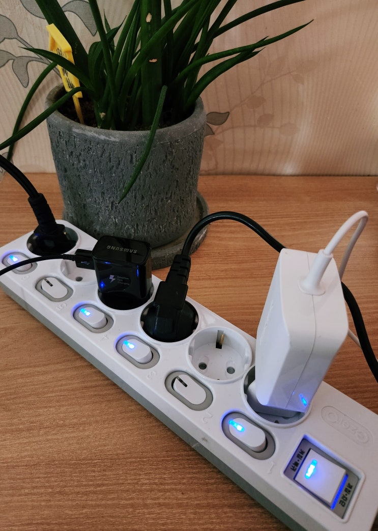 멀티탭에 대한 지식이 없었을 때에는 집에 있던 오래된 제품을 사용했었었는데요 국산의 안전한 코드를 써...