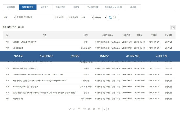 도서관 대출기록 (2017.04.30~2023.10.08)