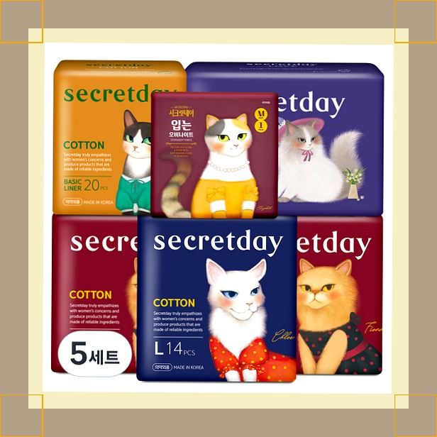 시크릿데이 생리대 코튼 중형 16p x 2팩 + 코튼 대형 14p + 코튼 팬티라이너 20p + 러브 오버나이트 10p + 입는 오버나이트 중형 6개월 사용 후 발견한 '신세계' 5가지