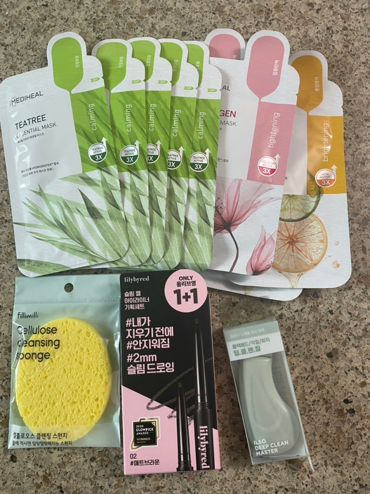 [올리브영] 소소한 구매(메디힐팩/릴리바이레드 아이라인/해면/필링기/김정문알로에 선스틱)